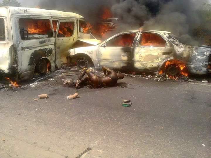 People burnt beyond recognition at Akure-Owo express road ,whereby 18 people were roasted to death . God will forgive them on all there sins.